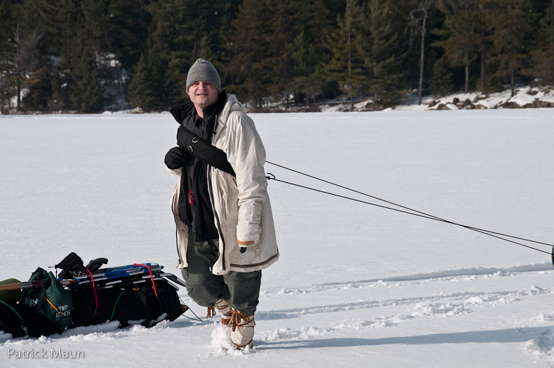 Steve uses a horse harness to haul his sled. There's a joke in there somewhere.