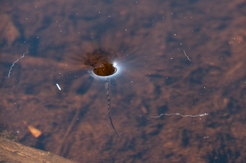 Walking along Sawmill Bog, we came across this tiny little whirlpool which we have dubbed Kate's Magical Maelstrom of Mystery. It would almost dissapear, and then reappear with a little tail. It was about .25 inches across.